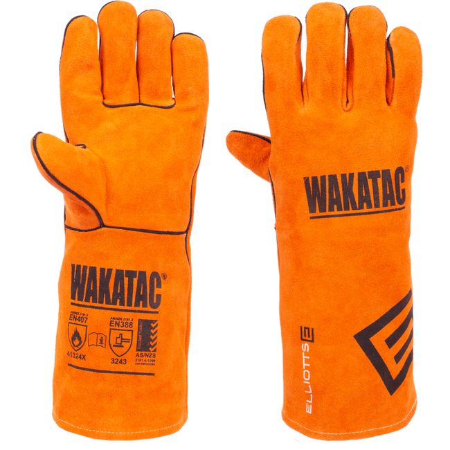 Bobthewelder Australia are your stockiest of top-quality Elliott Australia Welding Gloves is renowned for its exceptional quality, performance, and reliability, combining durability with ergonomic comfort. Constructed from premium orange butt leather and fully lined with 100% cotton, it enhances heat protection while managing perspiration during prolonged use. Welted seams and aramid thread stitching reinforce wear points, ensuring structural integrity.