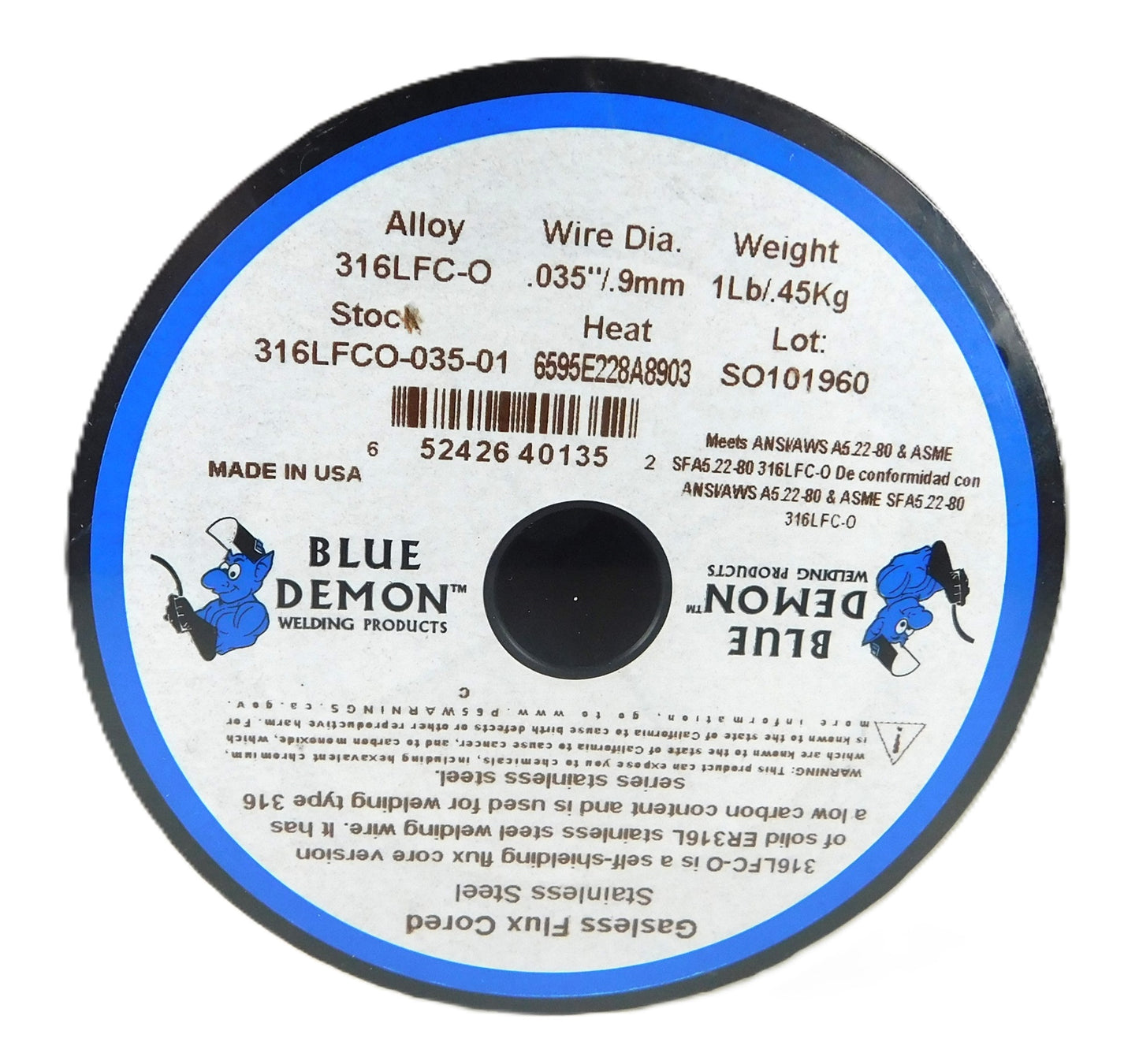 ONE (1) Spool Only Gasless Proweld/Blue Demon 316L