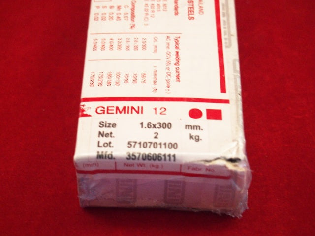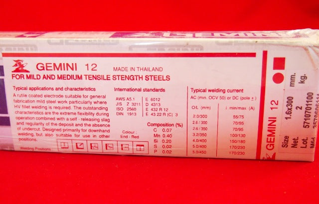 1.6mm 2.0Kg GEMINI 12 General Purpose Welding Rods 1000116