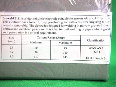 Proweld Cellulose electrodes are a fast-freezing rod meaning that the weld puddle changes from liquid to solid rapidly