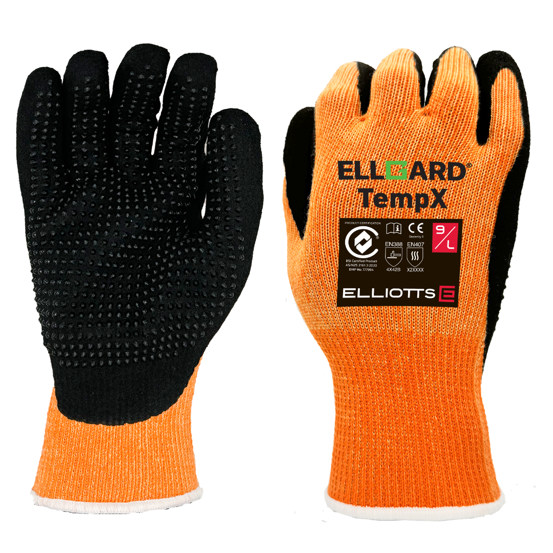 The ELLGARD TempX Heat Resistant Glove is the perfect solution for professionals who frequently handle hot parts, welded steel, ceramic Moulds, and other heated objects. Engineered to withstand extreme temperatures, this glove provides exceptional protection without compromising on dexterity. Its innovative design allows for precise handling, making it an essential tool in industries such as metalworking, welding, and ceramics.