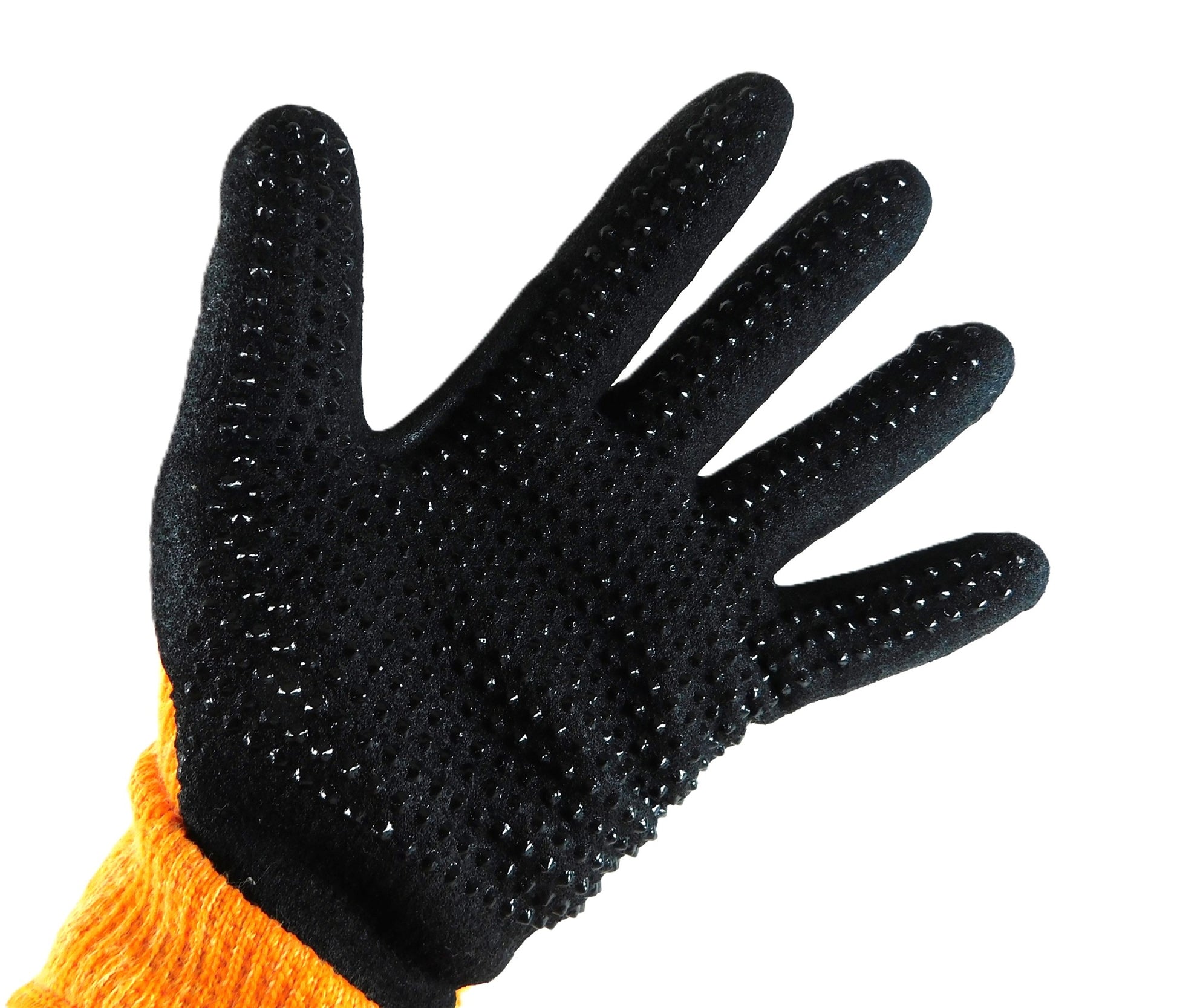 - Sandy nitrile coating with raised dot for extra grip and heat protection
