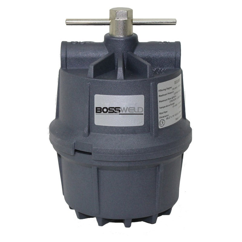 The Bossweld Air Filter removes condensed moisture, oils, and particulates from air supply.
