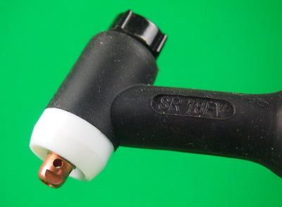 This Collet holder take the smaller WP-9 & 20 series Alumina Gas cups, ideal set up for tight fit welding positions.